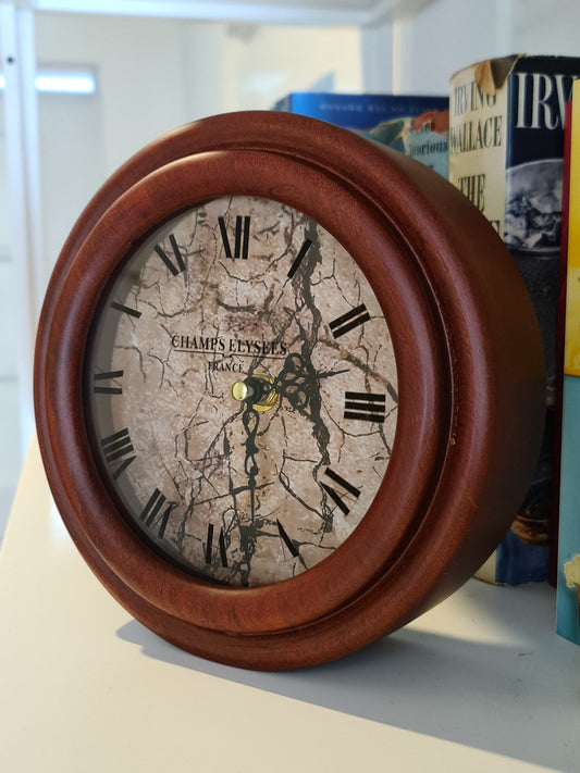 19 Cm Champs Elysee France Antique Wooden Table Clock
