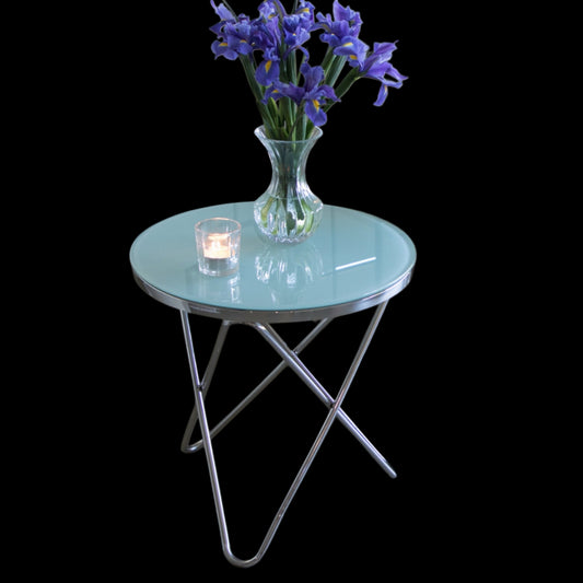 Nela Polished Stainless Steel Side Table W/ White Tempered Glass