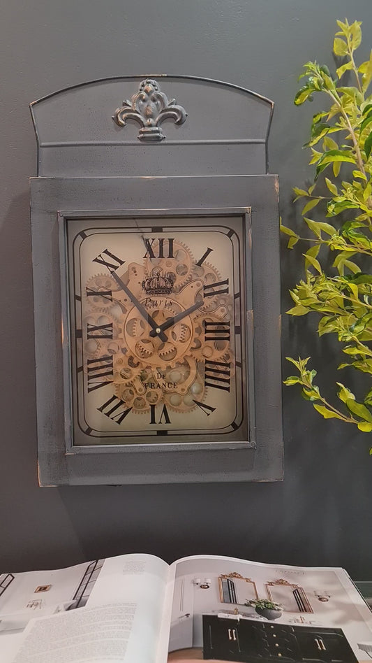 Roman Numeral 58.9 Cm Industrial Age Vintage Gear Moving Clock