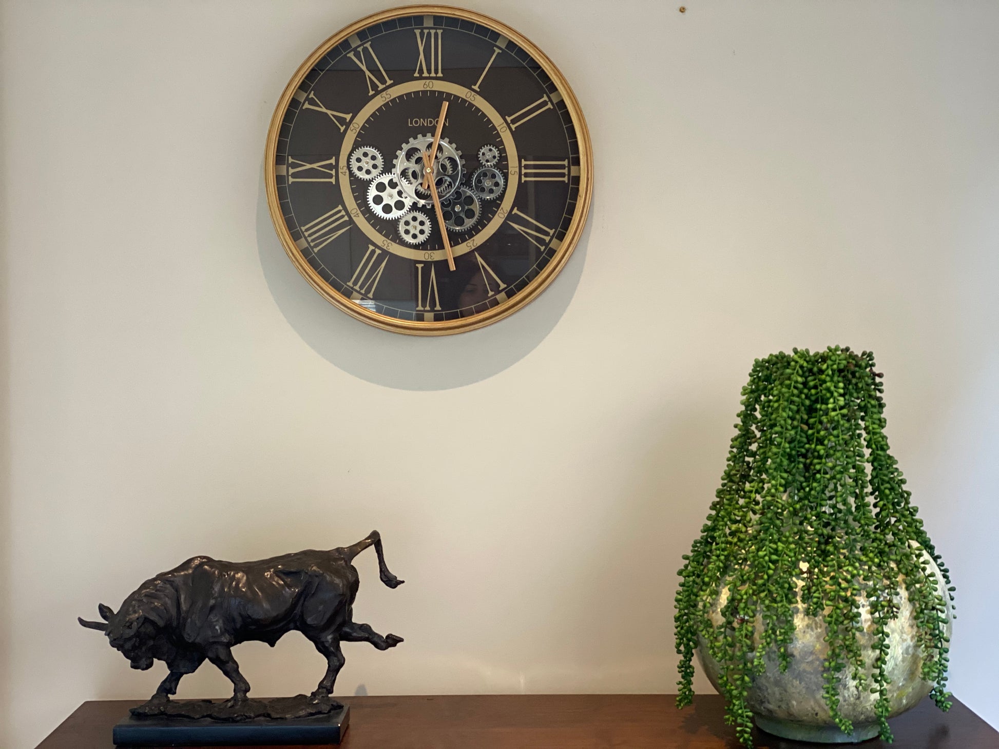 London 54.5 Cm Classic Gold Roman Numeral Moving Gold Gear Wall Clock