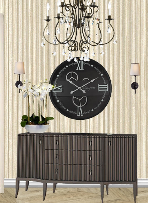 59 Cm Black & White Chuming Process Moving Gear Wall Clock