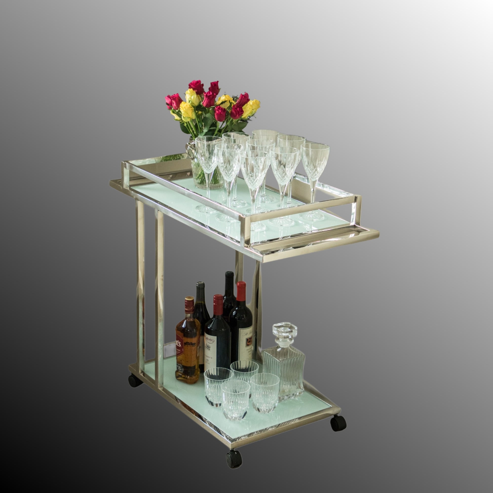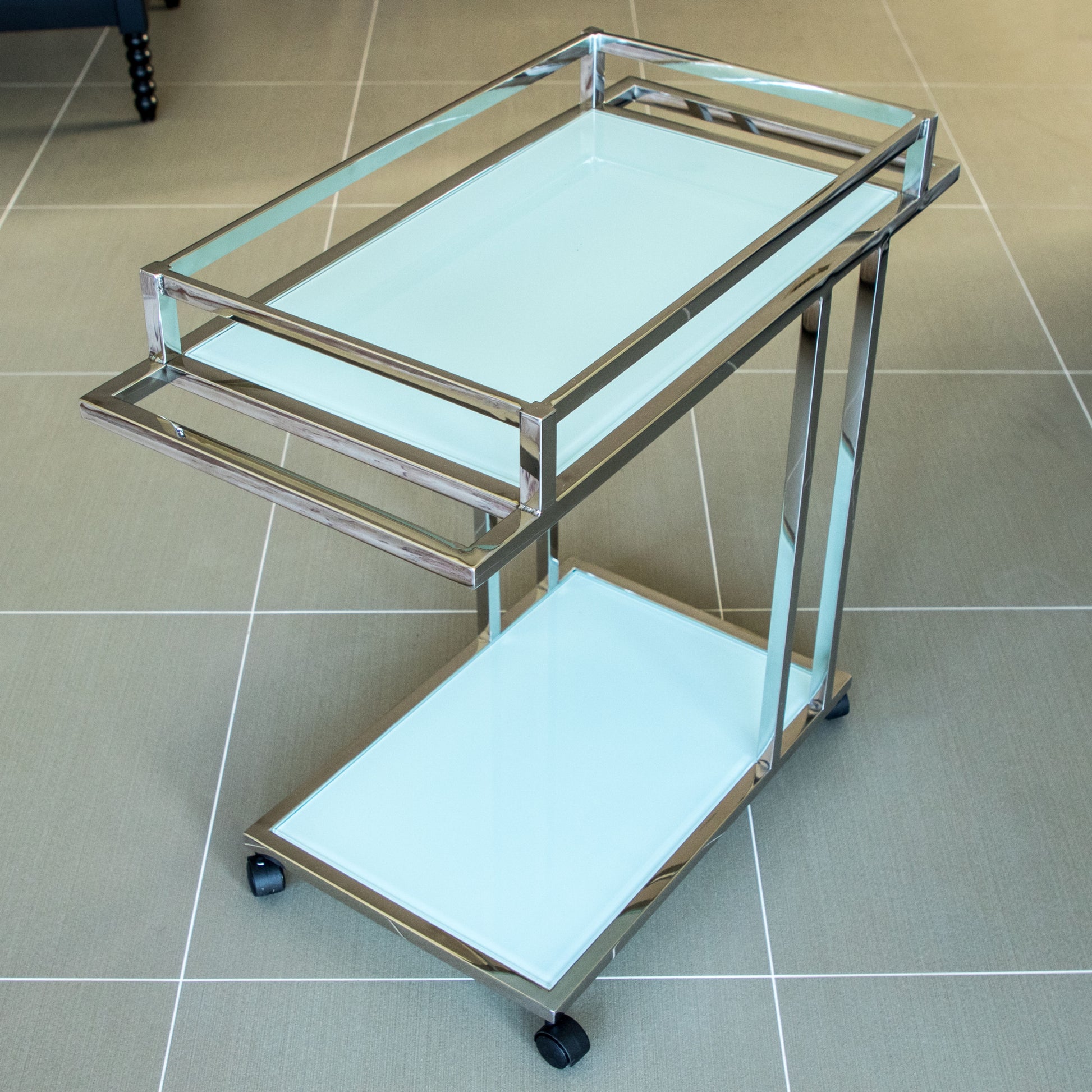 Aro Stainless Steel Drinking Trolley with White Tempered Glass (Pick up only)