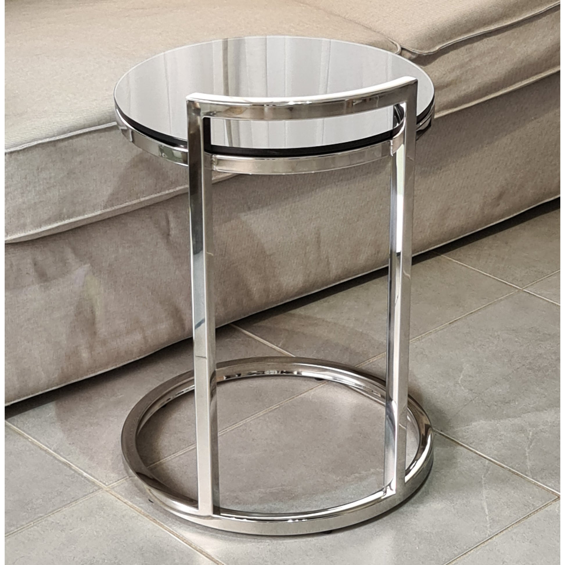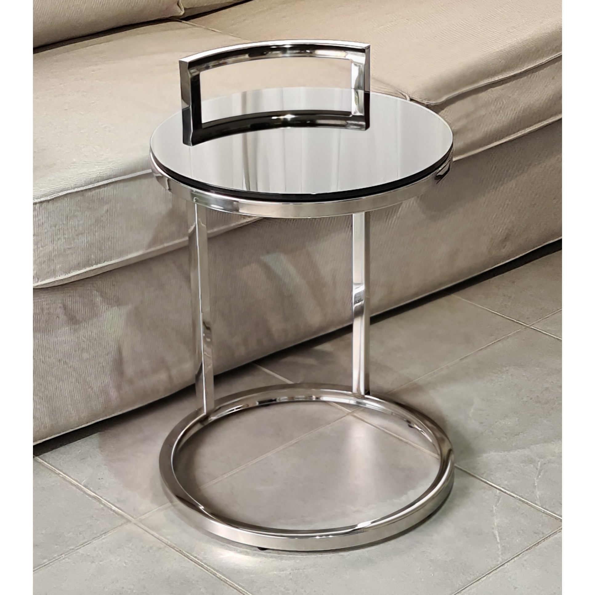 Azda Mirror Polished Stainless Steel Side Table with Black Tempered Glass