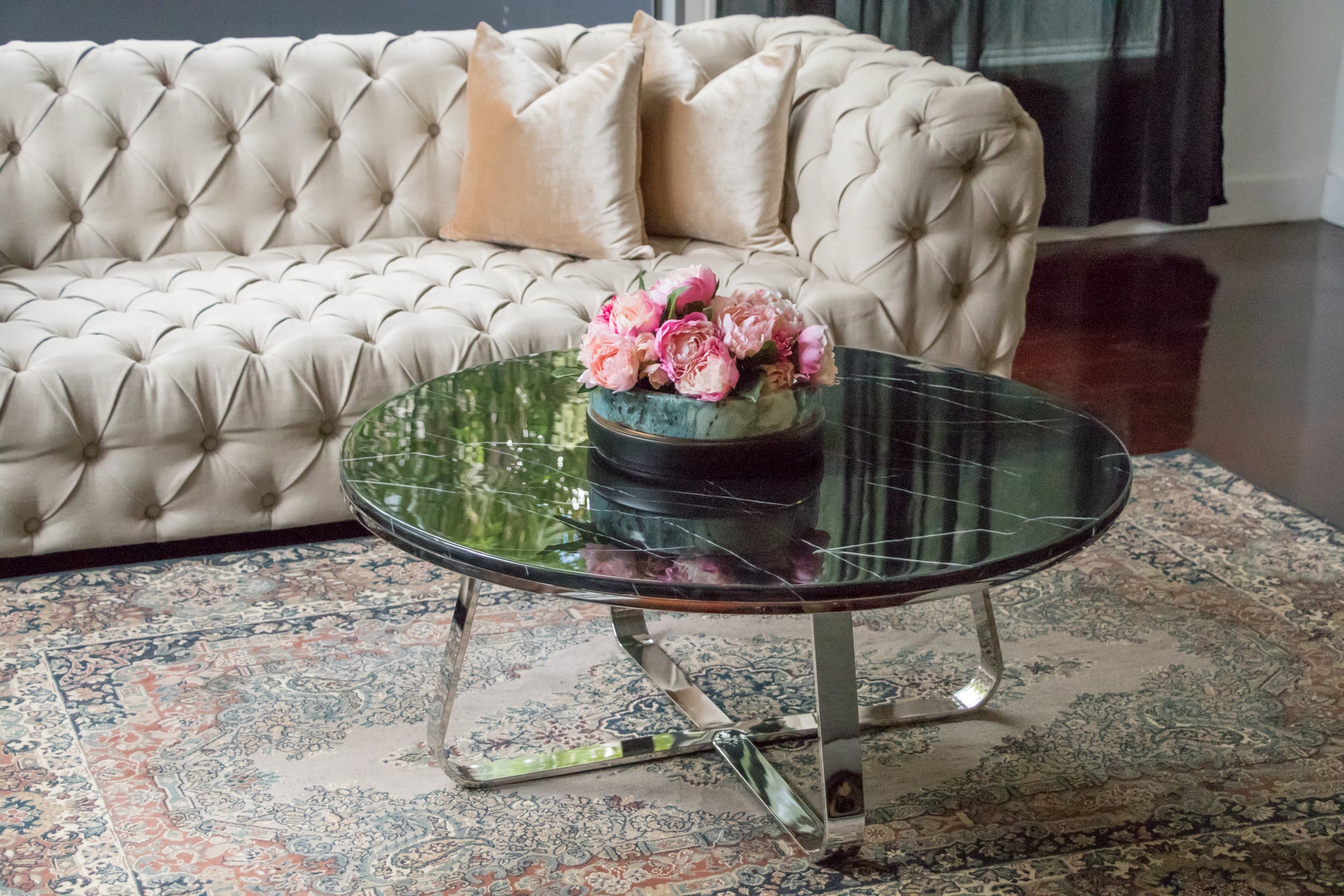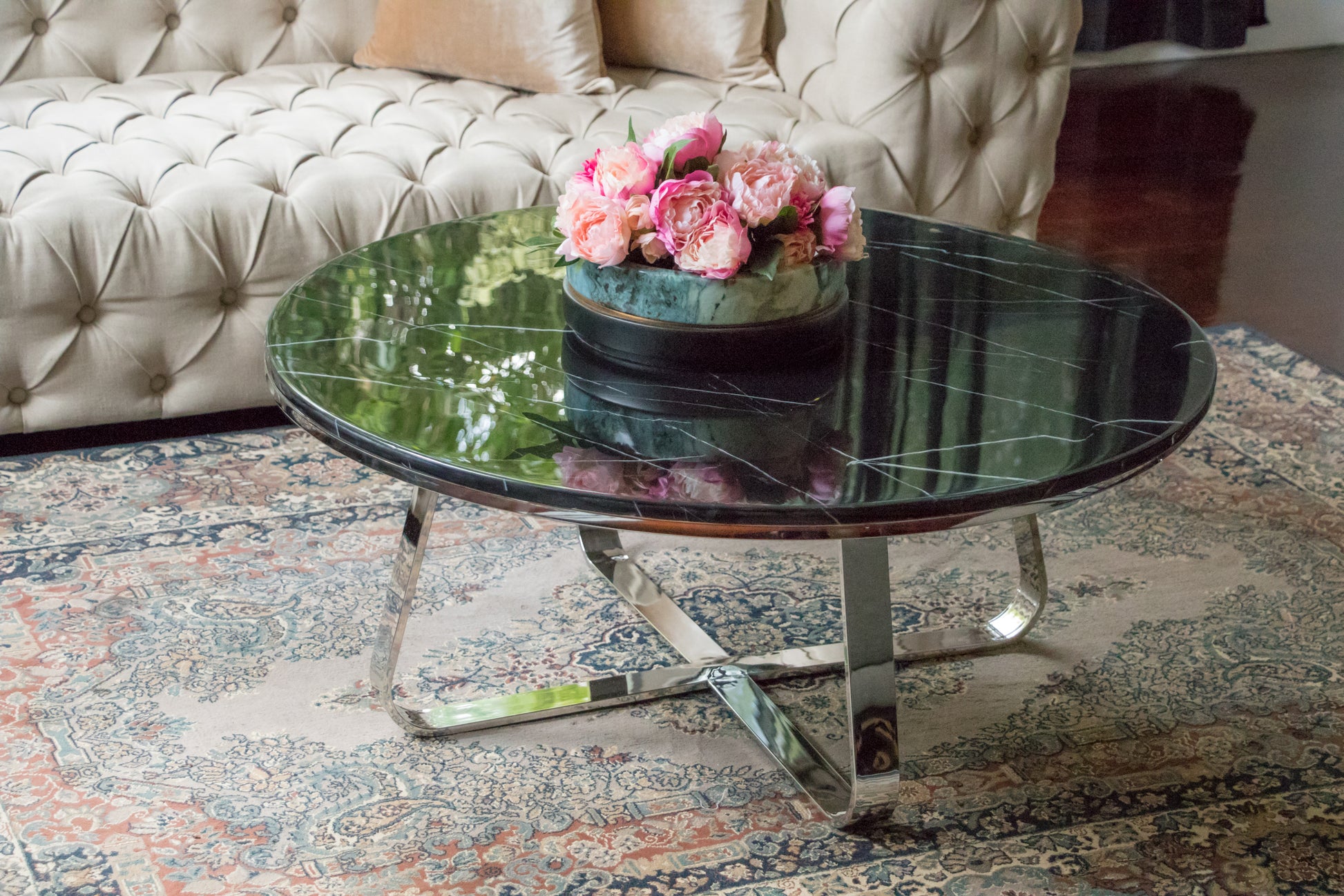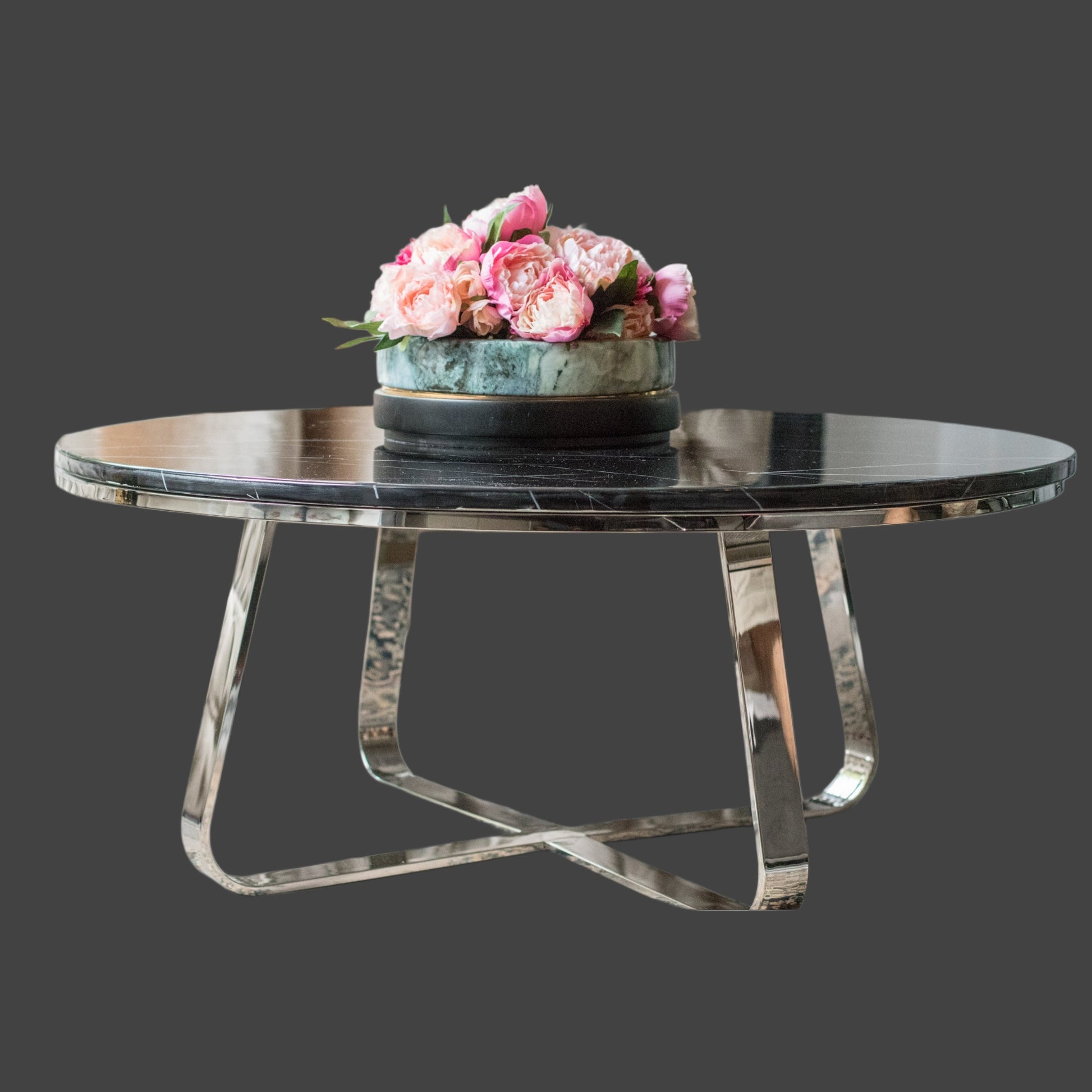 Belen Polished Stainless Steel Coffee Table with Black Marble Top (Pick up only)