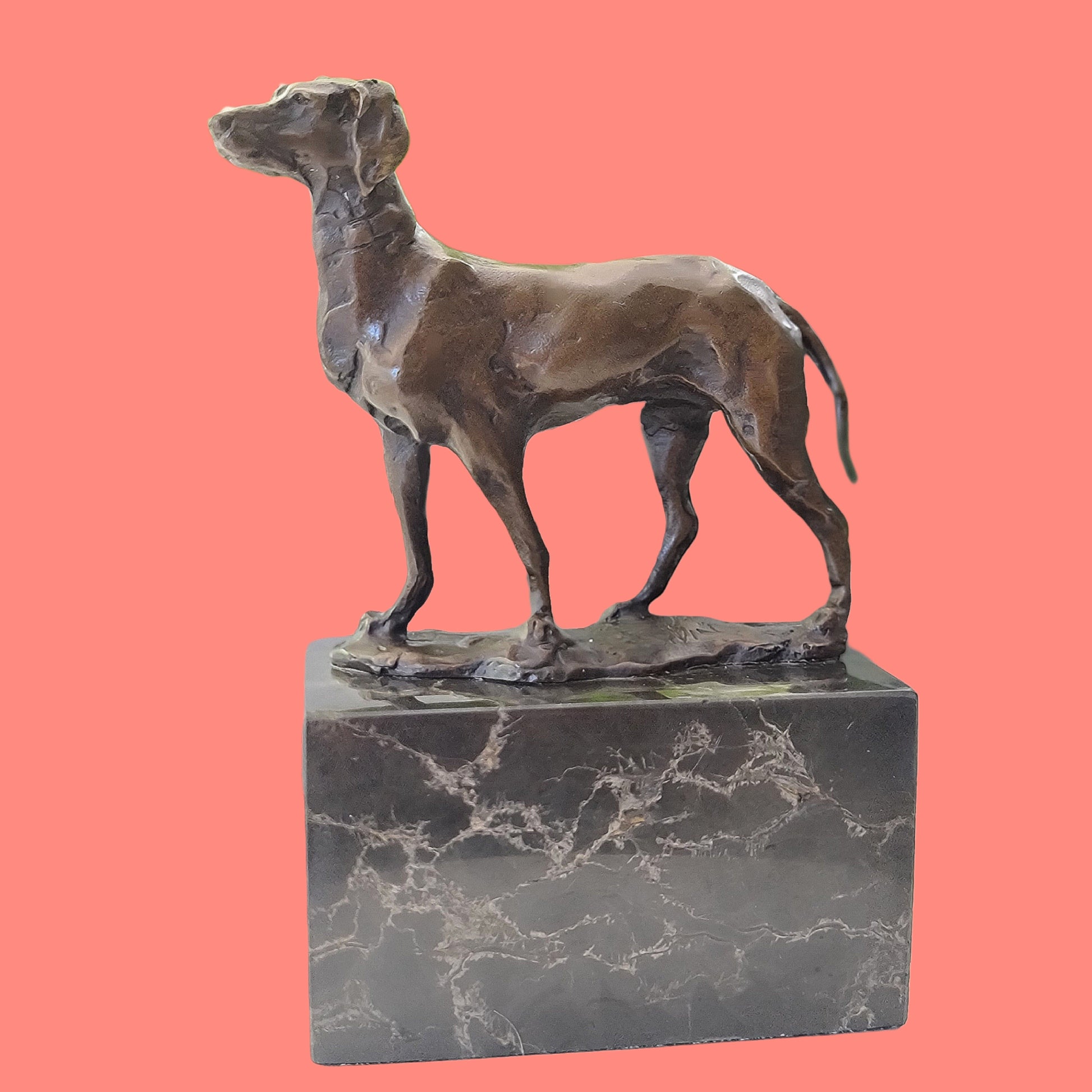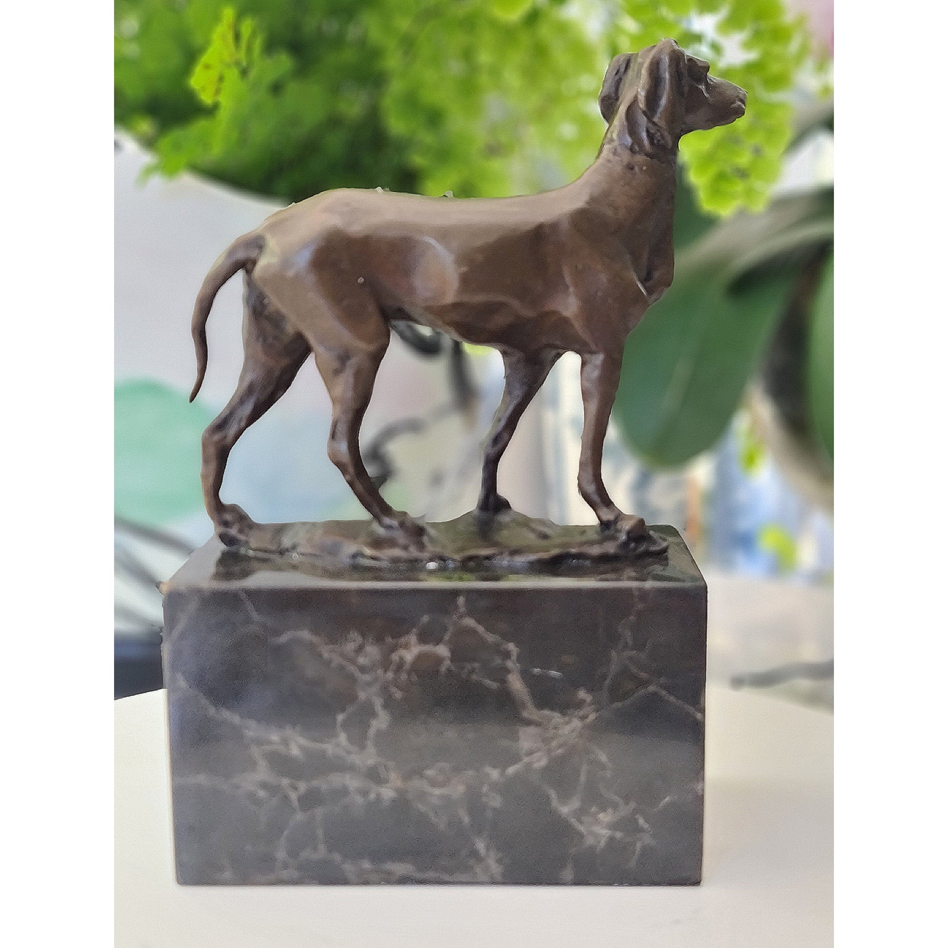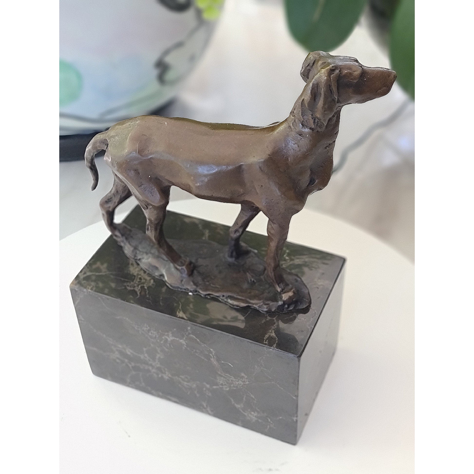 Bronze Hunting Dog / Hound Sculpture Marble Base
