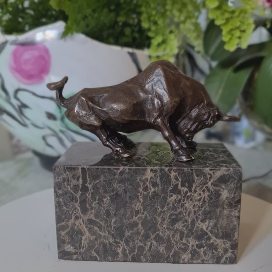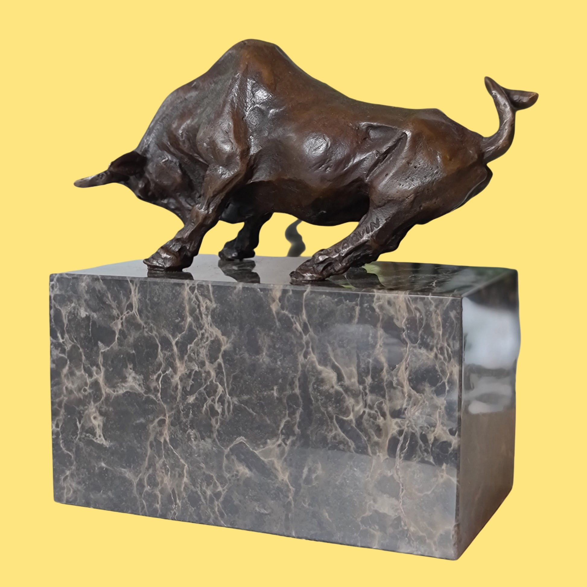Bronze Statue Bull Fighting Sculpture on Marble Base