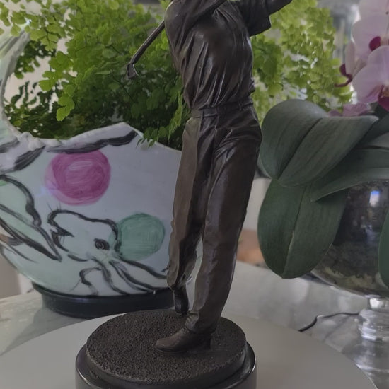 Bronze Sculpture of Golfer Golf-Spieler On Marble Base