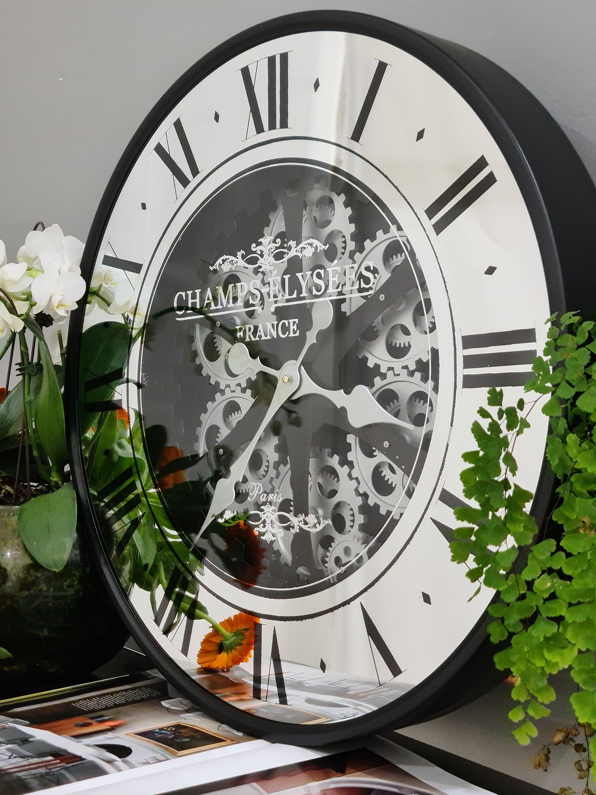 Champs-Elysees 59.9 Cm Mirror Moving Gear Wall Clock