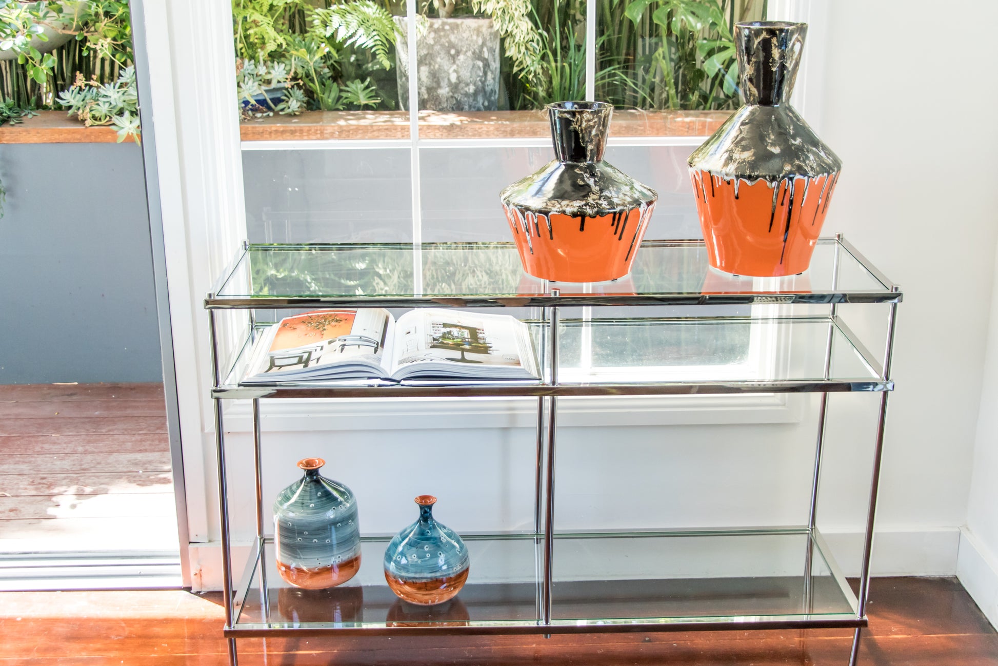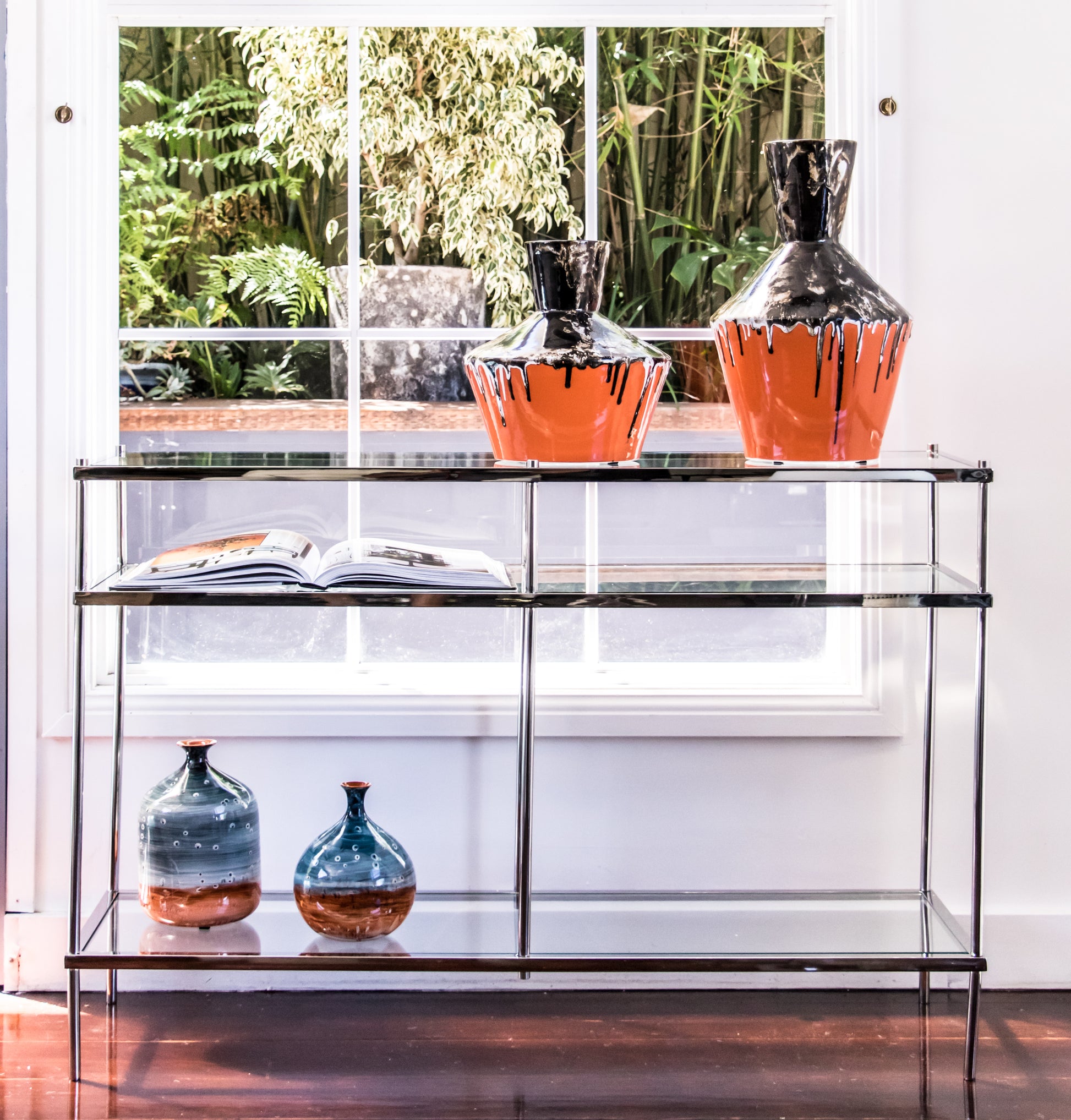 Large Geometric Textured Vintage Black And Orange Vase, Drip Painting (70% OFF)
