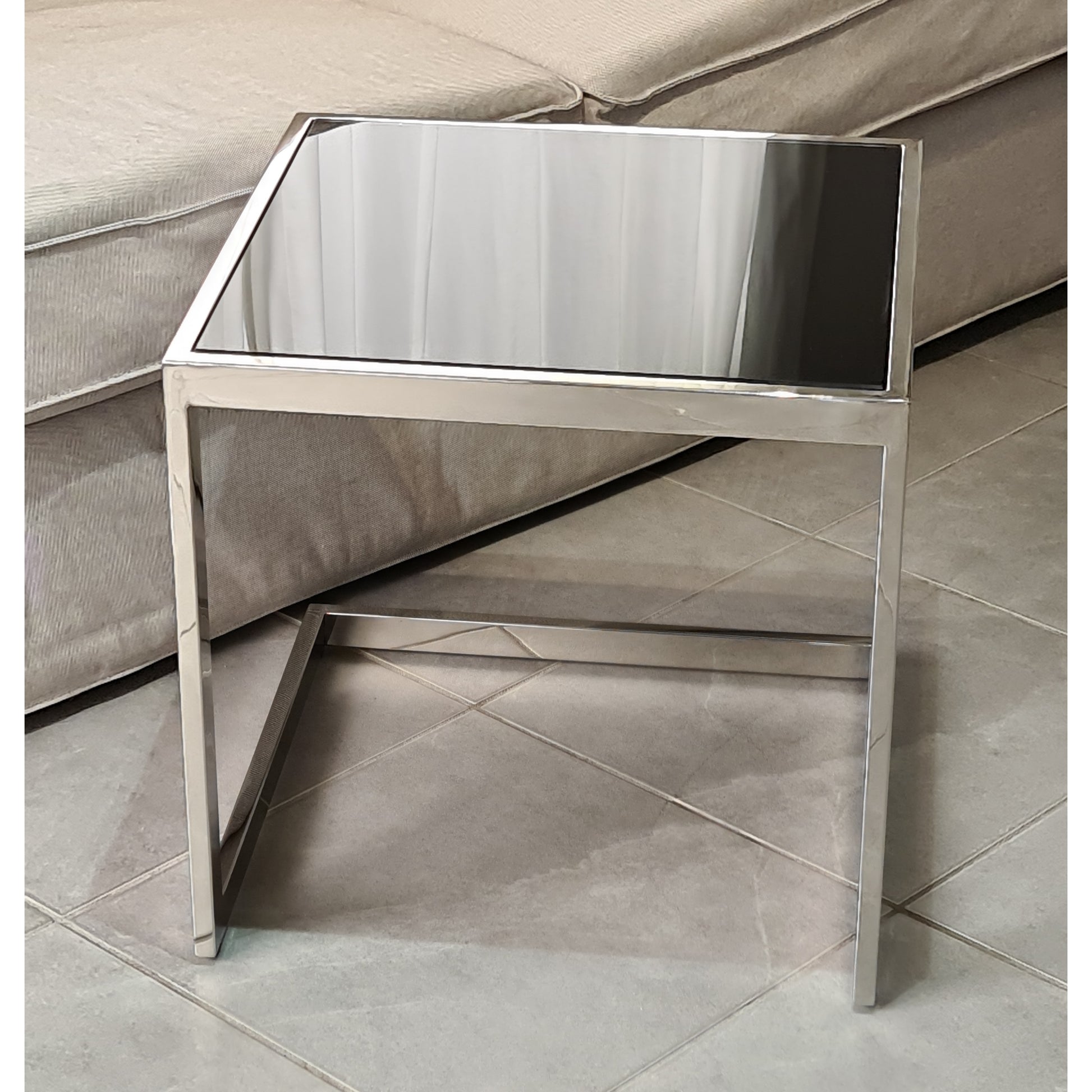 Malie Polished Stainless Steel Sid Table with Black Tempered Glass
