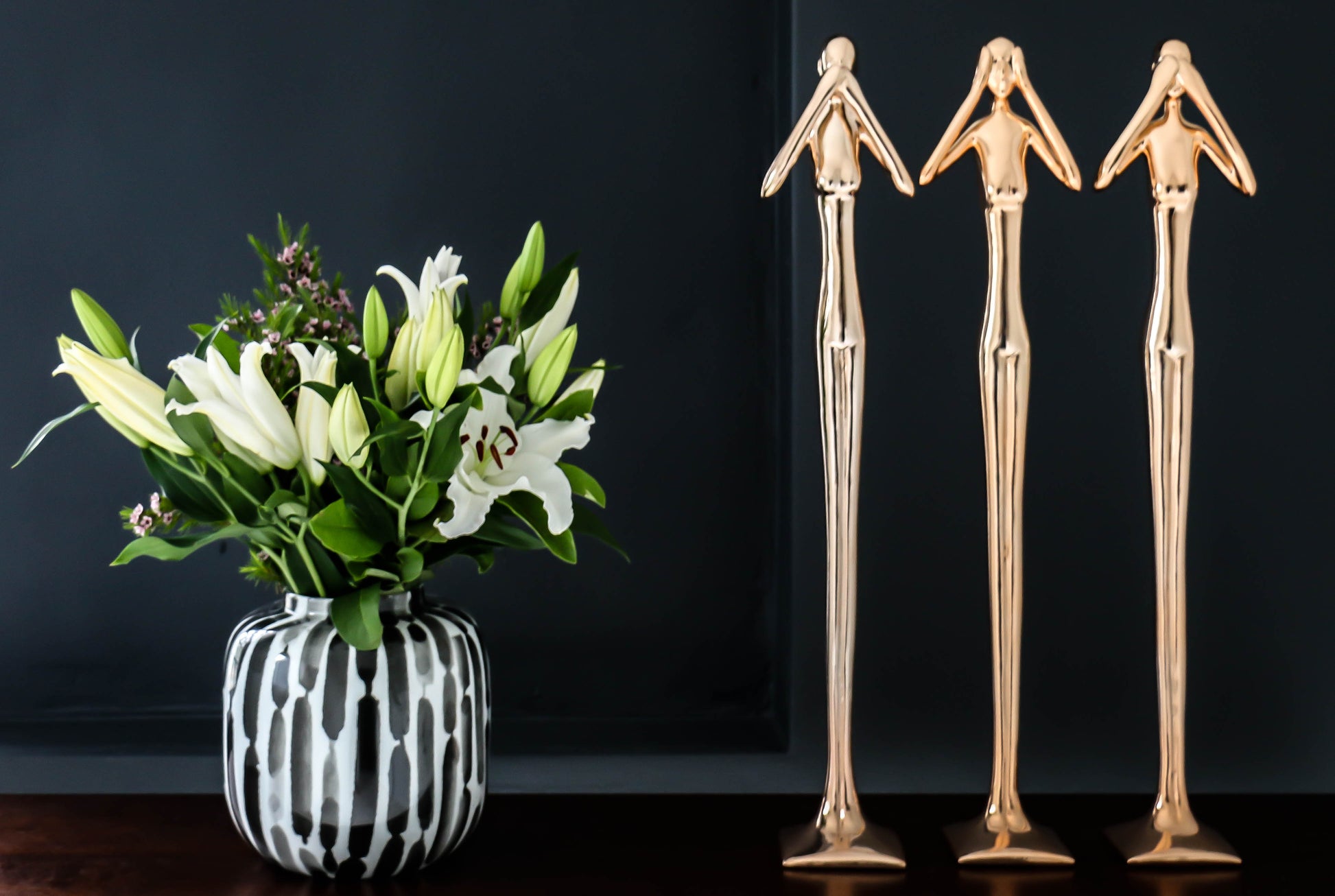 Hand painted-Black and White Vase with Vertical Pattern