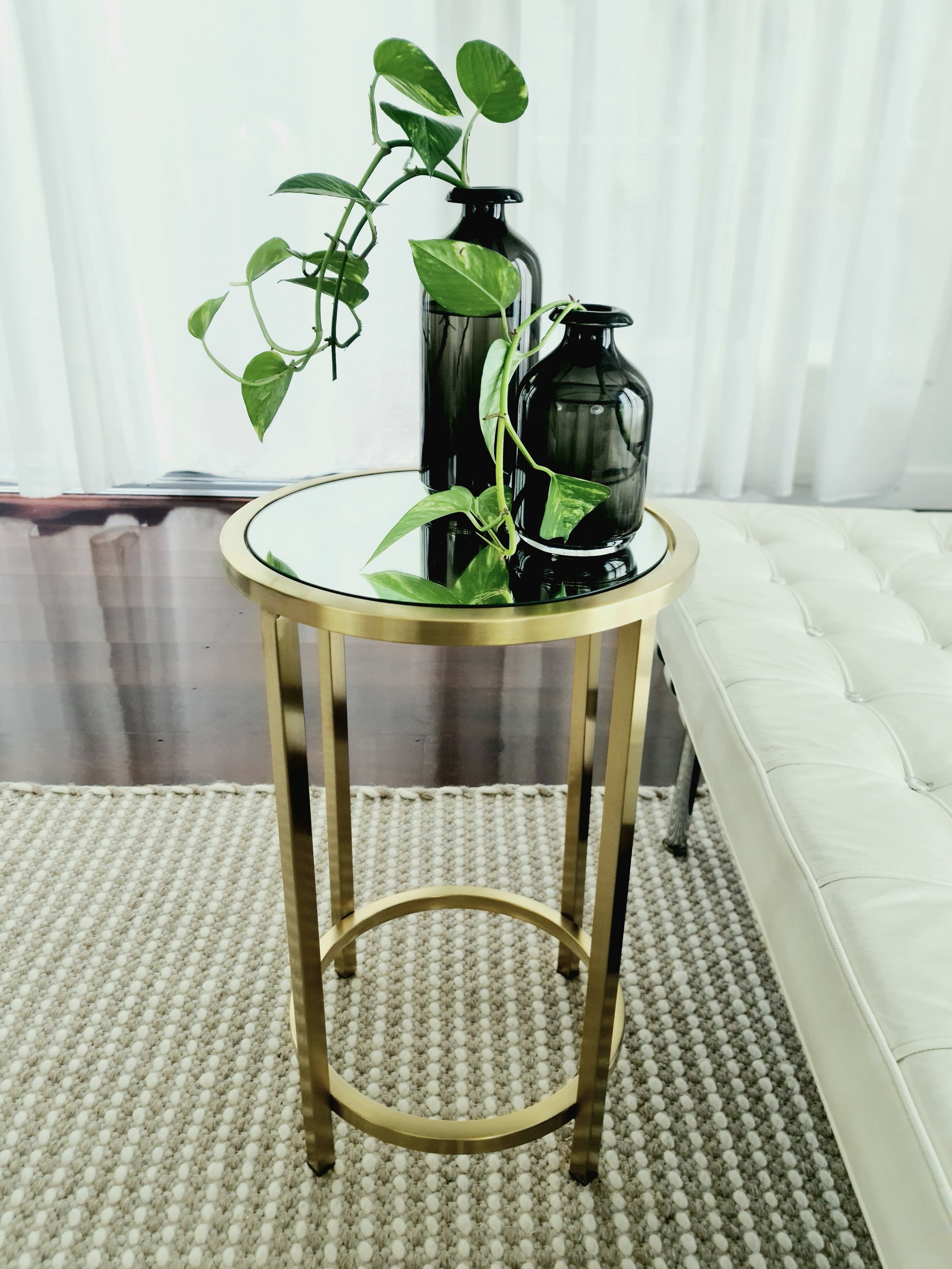 Dyako Gold Stainless Steel Side Table with Mirror Top