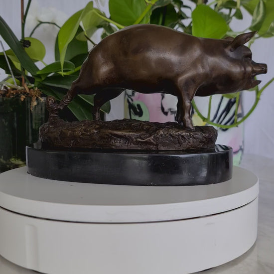 Early 20th Century French Bronze Pig Sculpture on Marble Base