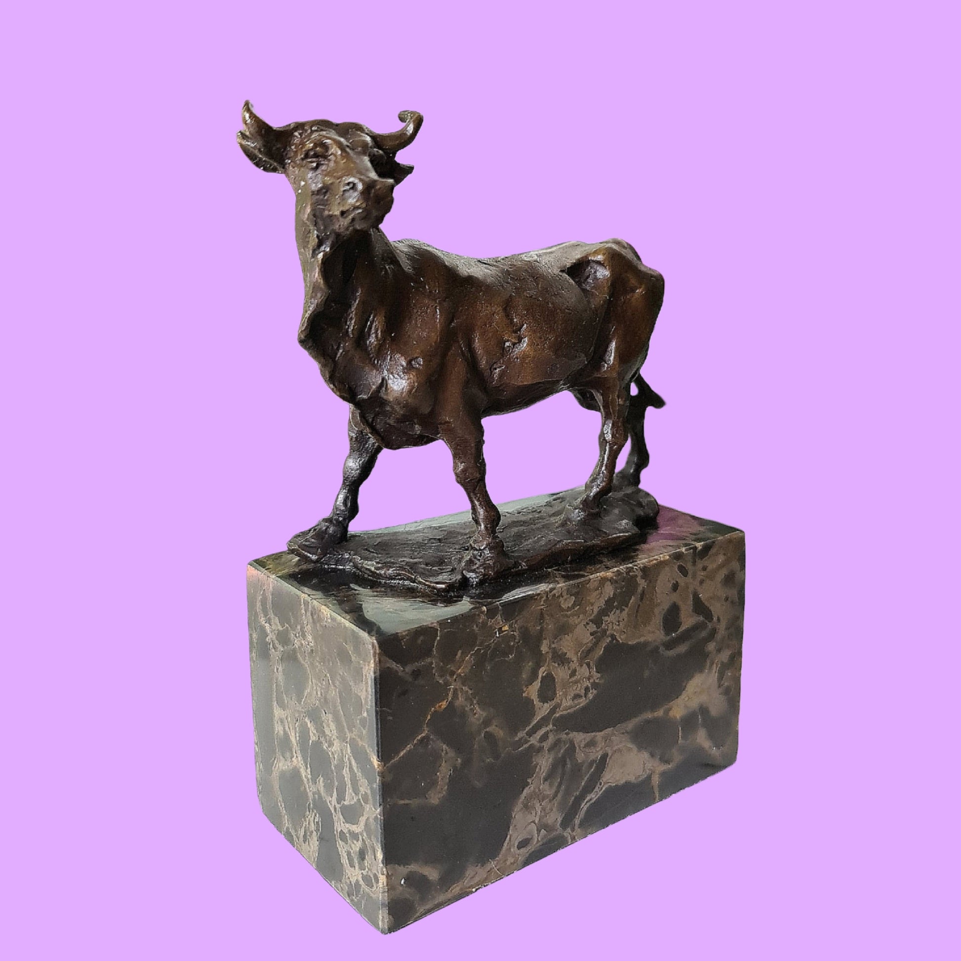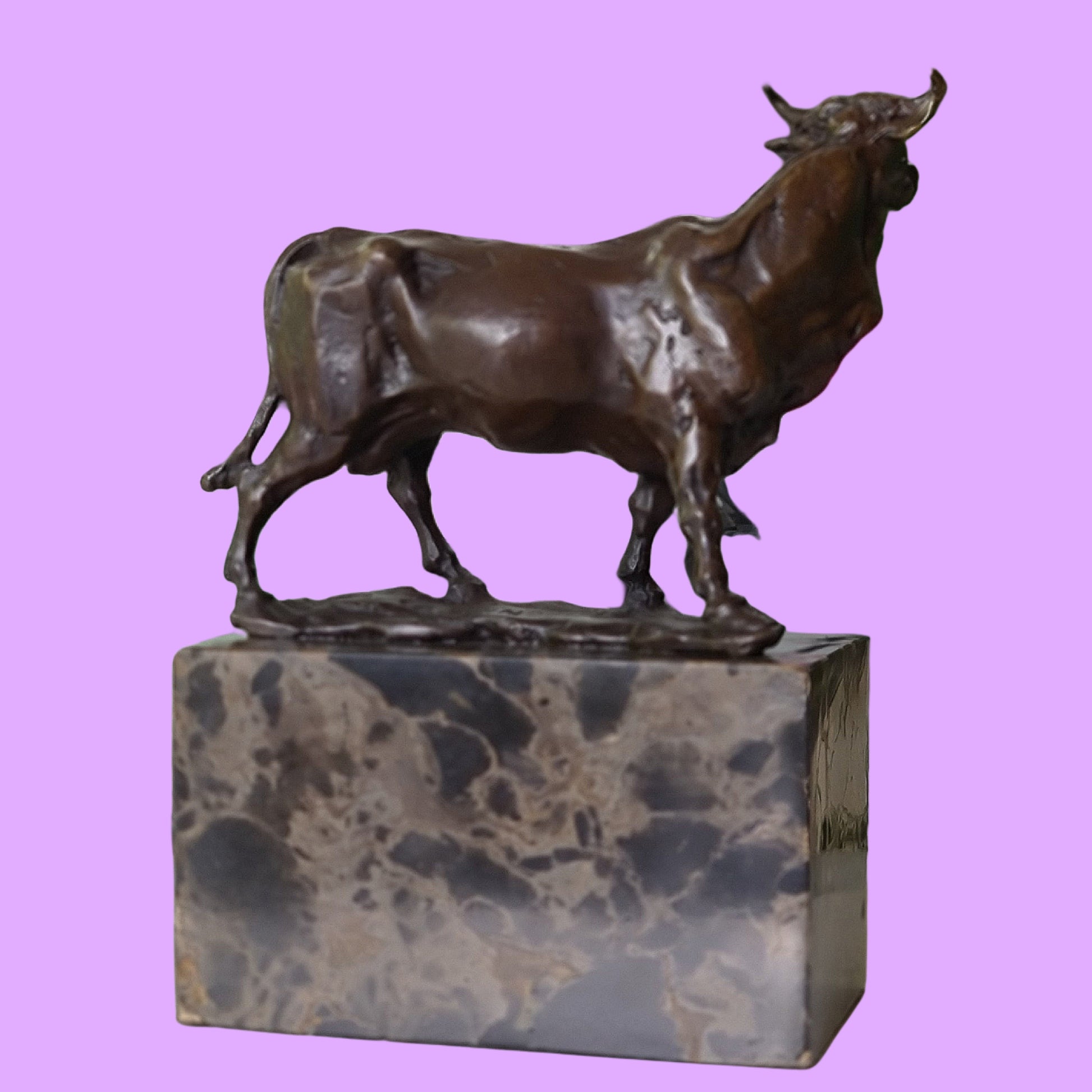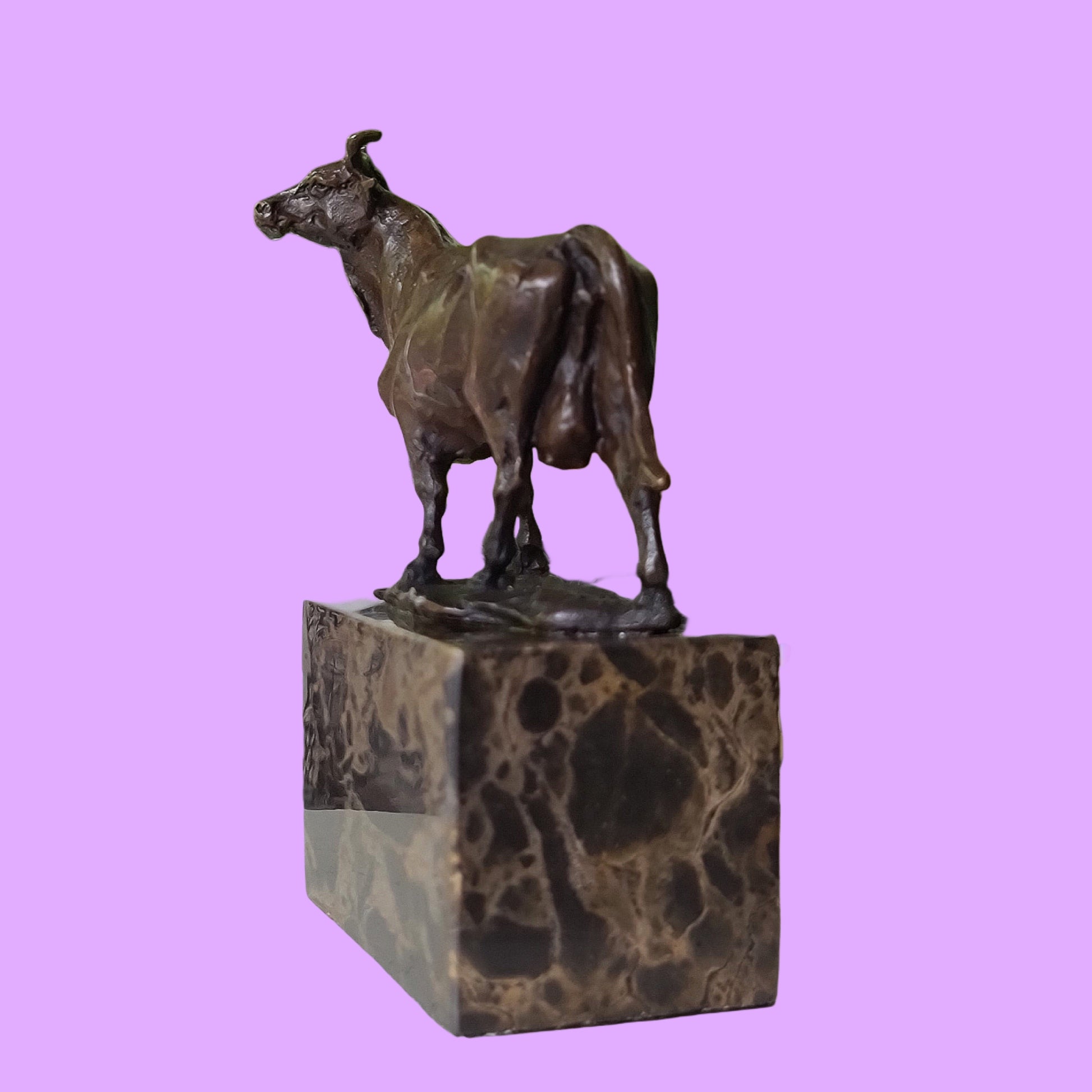 Cow Bronze Sculpture Handcrafted Deco Art On Marble
