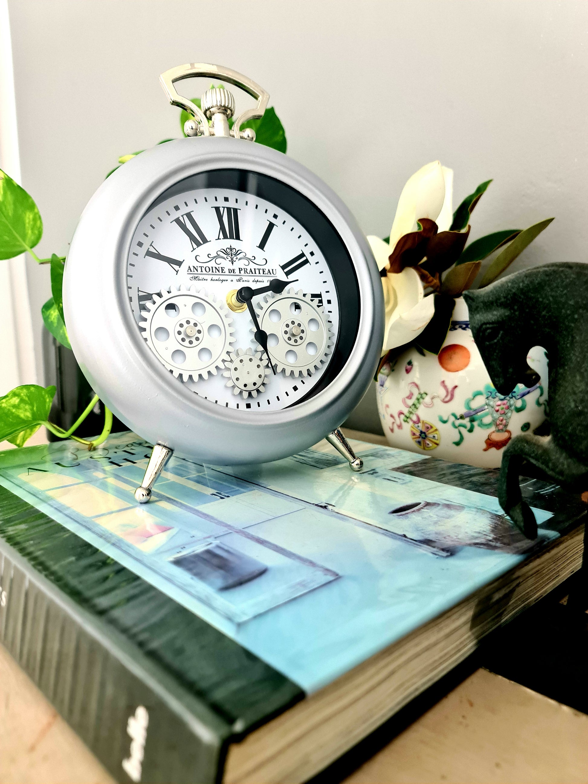 Antoine De Praiteau Victorian Grey Gear Table Clock