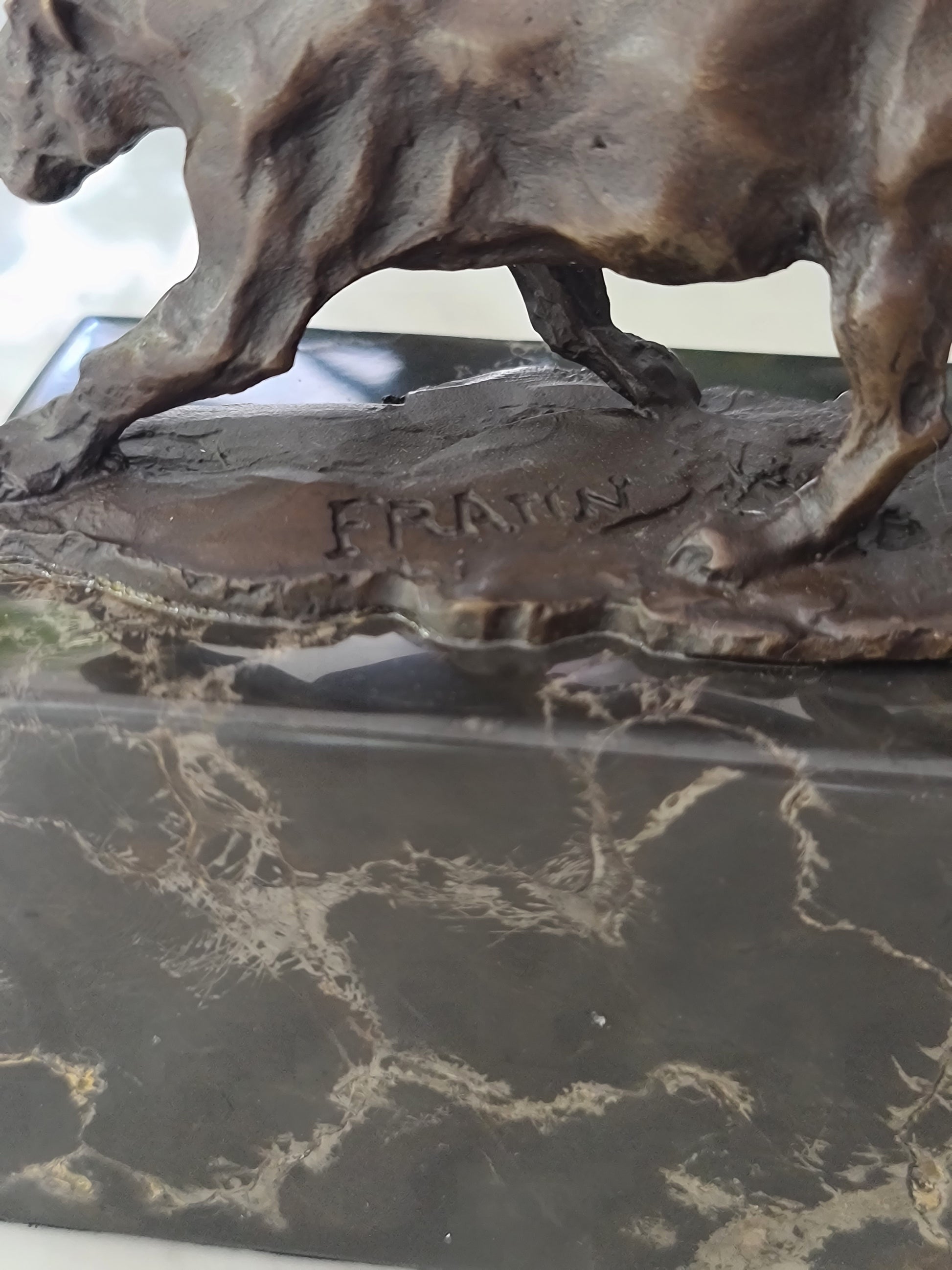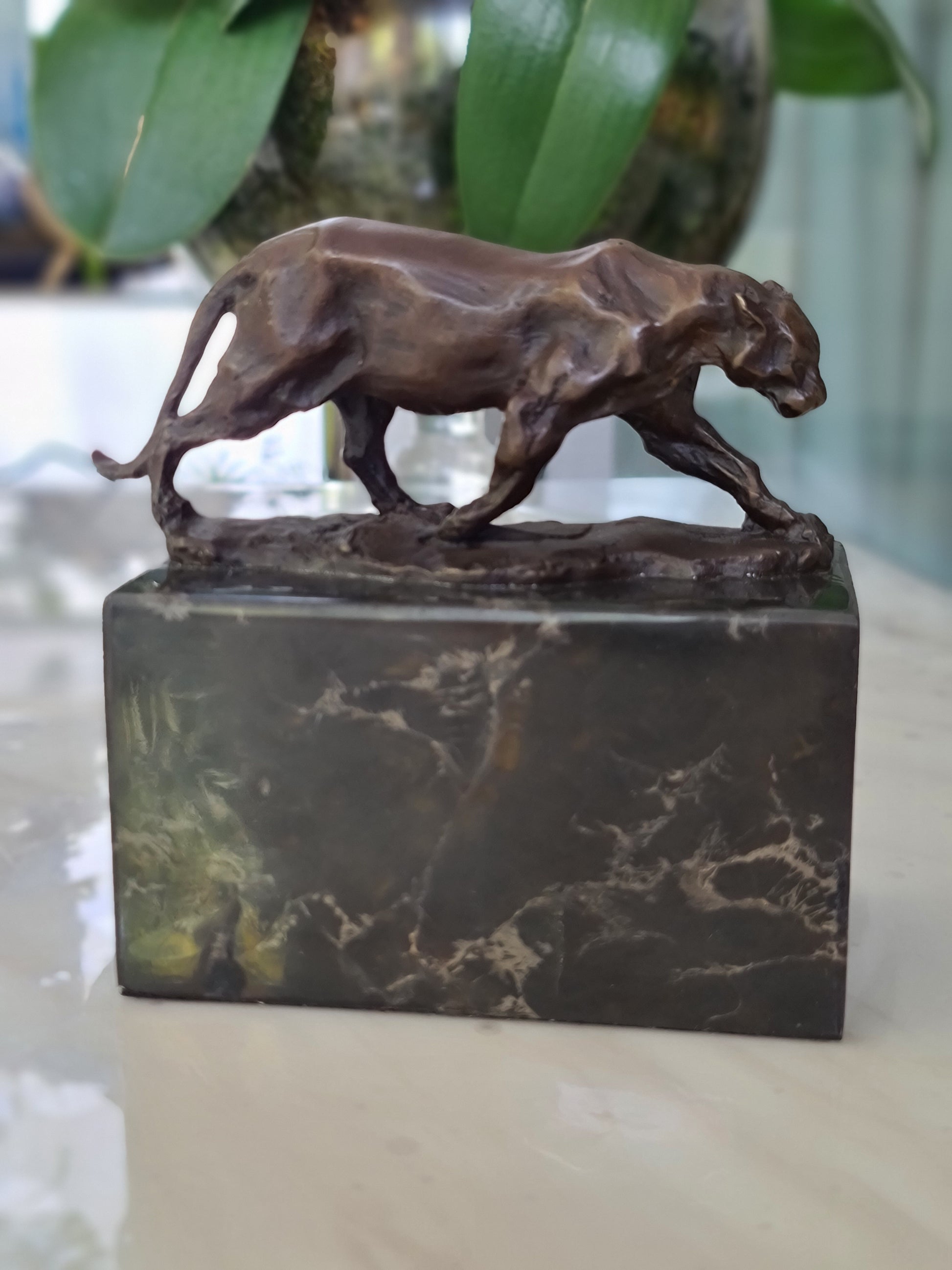 Leopard Cougar Bronze Sculpture On Marble Base