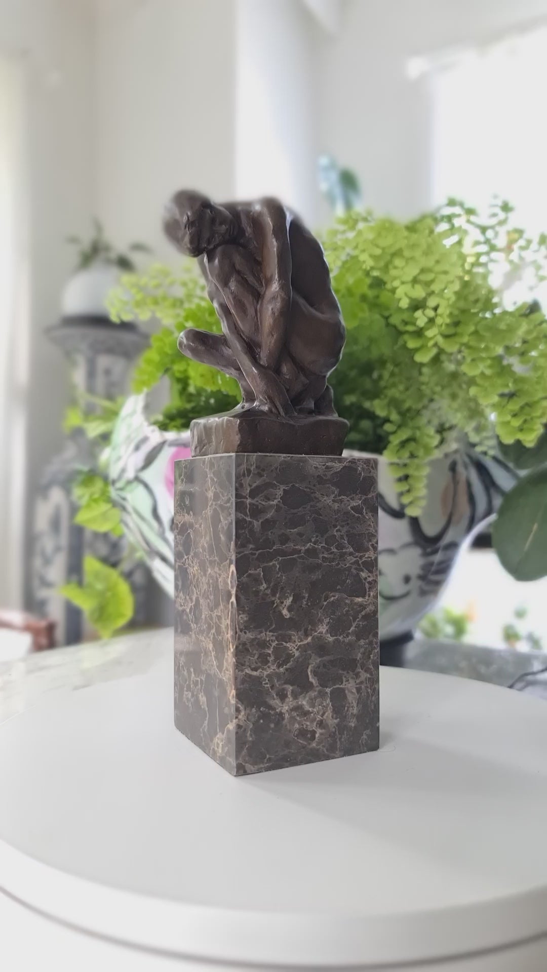 Nude Male Seated Man, Style of Rodin On Marble Base
