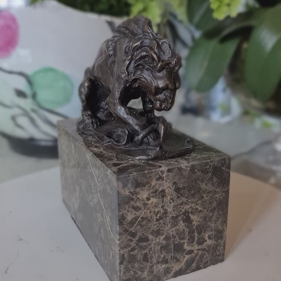 Snake & Lion Bronze Sculpture on marble base