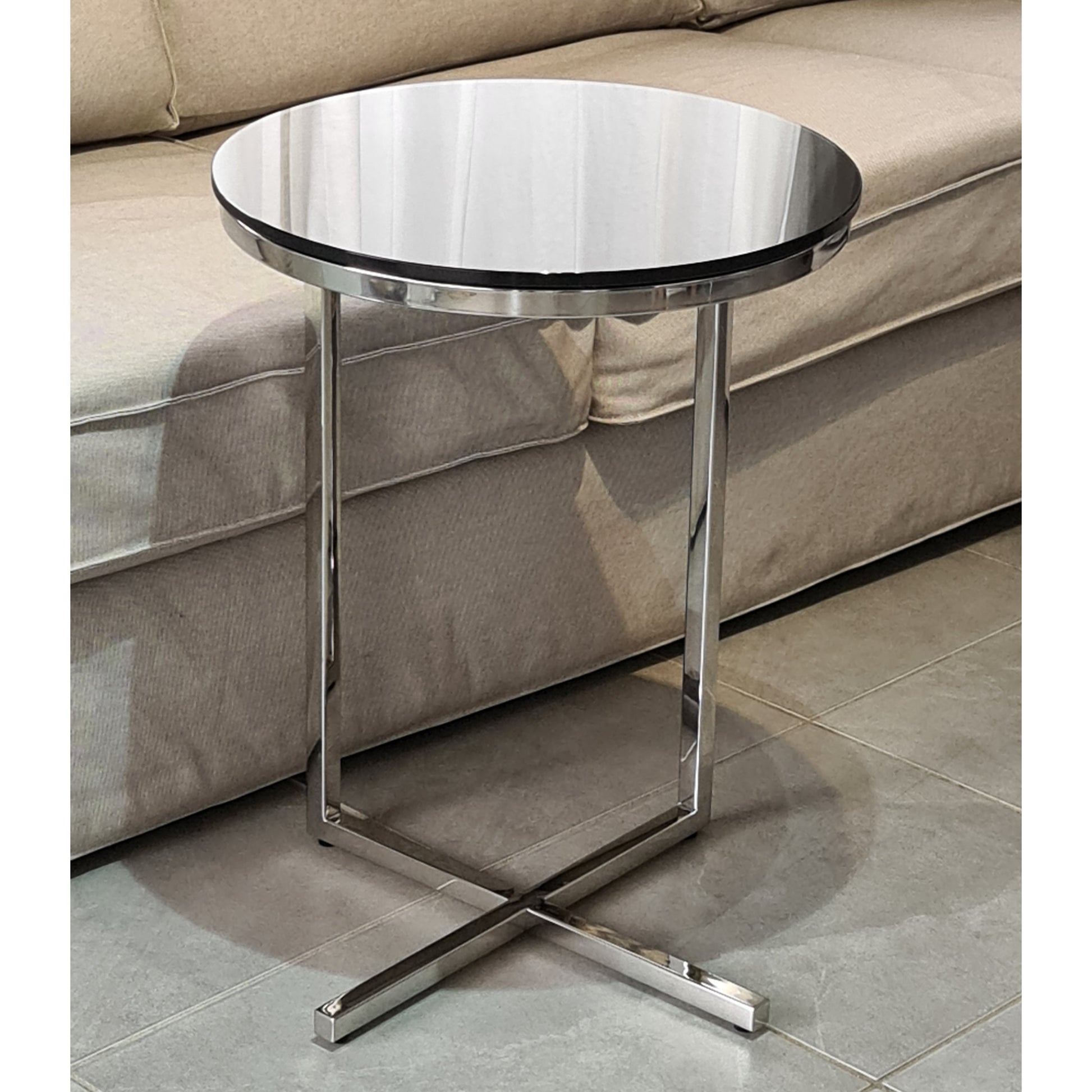 Zara Mirror Polished Stainless Steel Side Table with Black Tempered Glass